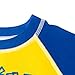 Contrast raglan sleeves; Awesome sublimation print design; UPF 50+ material for UVB and UVA protection and worry-free sun time; Mesh-lined swim shorts; 4 way stretch fabric for comfort and long-lasting fit; Drawstring closure; Elastic waist for better fit; Pull on closure