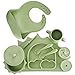 🥑 ALL YOU NEED BABY ITEMS: This Set Includes Everything You Would Need for Your Baby's Feeding Supplies for Ages 6 Months To 36+ Months. It Includes 1 X Sectional Baby Plates with Suction, 1 X Suction Baby Bowl with Lid, 1 X Adjustable Silicone Bib with Food Catcher, 1 X Silicone Spoon, 1 X Placemat and 1 X Leak Proof Straw Cup That Converts to Snack Catcher (10 Pieces Set)