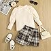 [Package Included] 1 x Toddler Girls Ruffle Top Blouse + 1 x Plaid Skirts + 1 x adjustable belt.