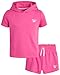 HIGH QUALITY OUTFIT: This 2-piece active shorts set for girls includes a performance French Terry Pullover Sweatshirt and a pair of matching shorts; Skin-friendly, high-quality smooth fabric breathes well to keep your active girl comfortable and cool on a hot day; This girls' summer outfit for outdoor sports and activities is also perfect as everyday loungewear