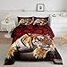 ✿【What You Can Get】--- Leopard Brown and Red Rose Comforter Set 3D Animal Printed Bedding Set Microfiber Aesthetic Blossom Floral Quilt Duvet Insert1 QUEEN Down Comforter 90"x 90" + 2 Pillow Cases 30" X 20". Oversized - Great coverage along the sides of bed.(Duvet Insert & Cases are printed Cartoon Sketch Gamer Gaming on the Side.)