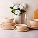 【STYLISH MODERN DESIGN】It is inspired by the fastchanging landscape of the desert, this collection features thick sturdy rims that are uncommon in tableware design.Those speckles really add a rustic vibe to these modern-looking dishes.They are so big, so you have plenty of room for all the food you want to put on it. The rims on the dinner and salad plates are turned up about 1/4", making it easier to scoop food onto a utensil,this is great for making sure that nothing is spilled off the edge.