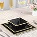 MINIMALIST DESIGN:Bring a unique sense of elegance to your dining table with these dinner plates from GOFUNFUN. Square design,steady &implici by a striking black finish with Quicksand Gold edge. which is understated and elegant.Minimalist style with a touch of the timeless classic .