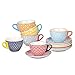 DECORATIVE DESIGN - Each cup with a matching saucer has unique patterns with bright colors, which light up your table and make a great addition to any party or your cabinet, and is perfect for all occasions. Using these cups makes you feel like you are in a cafe.