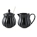 MULTI-PURPOSE COFFEE SERVING SET - With the classic black, simple and elegant that never goes out of style, this 7.5 oz sugar jar is not just for sugar, it could also be used to store salt, curries, spices, honey, etc. While the 6.8 oz Cream Pitcher is great for holding any liquid like milk, cream, syrup, etc. They are a nice addition when serving coffee or tea to your guests.