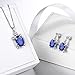 Feature – Bright brilliant Created Blue Sapphire precious gems; lovely matching accessories; earring necklace sets for ladies girls women; effortless classy sparky bling jewelry; polish finish rhodium plated silver non tarnish hypoallergenic