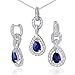 BLUE JEWELRY SET - A treasured gift for the woman you treasure the most, Peora Created Blue Sapphire Earrings and Pendant Necklace Jewelry Set in Sterling Silver is an essential to every collection. Beautiful teardrop setting elevates any style. Dimension: 1 1/2 x 1/2 inches.