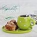 Beautiful ceramic mug with spoon and plate. Serve up drinks and dessert in style in these elegant cup and saucer sets.