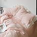 【Romantic Pink Ruffle Duvet Cover Set】: White stripes pattern printed on romantic pink farmhouse duvet cover set, with white lace tassel ruffles design looks elegance and romantic, chic and rustic designs delivers an understated yet elegant ambience; and after a special process, wrinkles in a slight degree on farmhouse style duvet cover reflect a sense of old materials and vintage modern look. It is also a great gift idea for women, girls on birthday, wedding, Christmas and Thanksgiving.