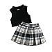 Features: Sleeveless ribbed black pullover baby girl tank top, round neck design, matching with elastic waistband plaid pleated skirt. No closure design, easy to put on and off. This girls fashion outfits are perfect for spring & summer wear.