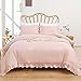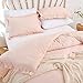 【EASY CARE & CLEANING】 The blush pink comforter set is machine washable in cold water on a gentle cycle and tumble dry with low heat. Elegant chic ruffled full comforter set is wrinkle free with no ironing necessary.