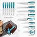 ALL-IN-ONE COMPLETE SET – Professional Knives set lake blue solid includes 8”Chef Knife, 8”Slicing Knife, 8”Santoku Knife, 8”Bread Knife, 5”Utility Knife, 3.5”Paring Knife, Kitchen Scissor, Knife Sharpener to stay sharp and 6 pieces of 4.5”Steak Knives .