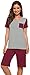 Design: Short sleeve top with patch pocket decor+ Pajama shorts with elastic waist + Contrast color pajama set, many colors to choose. Good choices as summer pajamas/ ladies loungewear/ womens sleepwear, fashionable and flattering.