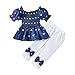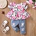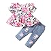 ✿ Fashionable Match: Floral printed shirt top with ruffle hem, together with denim ripped jeans pants, definitely a combination of sweetness and coolness. Great gift for your little one and your baby girl must love these floral pant sets.