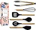 ✔ ADD GLAMOR TO YOUR KITCHEN WITH THIS COMPLETE BLACK AND GOLD UTENSIL SET – complement gold kitchen accessories with this striking metallic set of gold & black silicone cooking utensils perfect for preparing and serving meals; includes slotted turner and spoon, solid / basting silicone golden spoon, golden spatula, gold whisk & gold tongs for serving food; pair with our black utensil holder, black & gold kitchen tools and gadgets and our black and gold pots and pans set for the perfect look