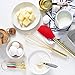 FOOD-GRADE SILICONE IS DURABLE AND STAIN-RESISTANT FOR CONVENIENT COOKING AND CLEANING - our silicone kitchen utensils set gold and white combines the best of function and form; food-grade silicone is nonstick and BPA-free, safe on any cooking surface and highly durable and resistant to cold and hot temperatures ranging from -22 Fahrenheit to 450 Fahrenheit; dishwasher safe white cooking utensils set makes for easy cleanup.