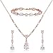 ➤ DESIGN: This dangle earrings and necklace set is perfectly matched with clear AAA grade prong set cubic zirconia in a single teardrop design set in rose gold and silver. It comes with the option of backdrop or no backdrop at checkout.