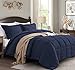 GREAT VALUE. The Navy blue Twin size comforter set include 1 Twin size comforter 68*90 inches, 1 pillow shams with invisible zipper 20x26 inches with 2 inches flange. The fabric is premium soft and breathable. The filling of the twin bedding comforters is whole piece microfiber filling, no clumping.
