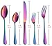 ♪ [ EXCELLENT DETAIL ] : Colorful shinning metallic look, Beautiful silverware, high quality titianium rainbow coating, it enhanced surface hardness, avoid the scrath on the flatware when using and more that reveal both artistic and safety