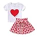 Feature: trendy little kids toddler baby girl fashion outfits skirt set, short sleeve heart pullover t-shirt tops, matching heart print button decoration a-line skirt, perfect toddler girl 2 piece skirt outfits, suitable for spring/summer/autumn