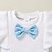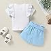🎀【Feature】The short sleeves with cute ruffled trim. Solid color top with adorable bow as decoration. The soft shorts with a belt.Suitable for baby girl clothes 3-6 months, baby girl outfits 6-9 months, 9-12 months baby girl summer clothes, 12-18 months baby outfit,18-24 months girl clothing.