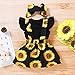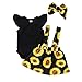 Feature: baby girl summer floral outfit, vibrant sunflower printing, flutter sleeveless romper, infant girl suspender skirt, bottom snaps for diaper changing