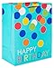 These gift bags feature 6 different designs: 1 large bag with "Birthday Girl" and cupcake design, 1 large bag with multi colored polka dots and Happy Birthday text, 1 large bag with multi colored paint splatters and 'Happy Birthday' text, 1 medium bag with unicorn and rainbows, 1 medium bag with 'Happy Birthday' text on red, 1 medium bag with 'Happy Birthday' text on blue and green pixelated bag