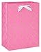 This medium gift bag features a gold glitter trellis pattern on a bright pink background with white satin ribbon handles