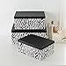 MODERN ANIMAL PRINT—A whimsical zebra pattern with pink spots gives these boxes their charm. All-over pattern is complemented by solid black lids.