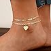 14K GOLD PLATED ANKLET: Chunky cuban link chain gold anklets for women with heart initial charm, 14K gold plating crafts, wear with this classic gold cuban link ankle bracelets is a perfect jewelry for women and teen girls to get a fashion look and style. Perfect gold figaro chain anklet for women jewelry collection.