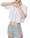 V-neck and short sleeve full button closure,Loose fit classic contrast color and crop top design,can show your slim and perfect figure.
