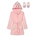SOFT AND PLUSH: Terry robe and girl’s slides are made with high quality fleece material, soft linings and cute appliques. Robe and slippers are embellished with sparkly unicorn horn and cute details that girls will simply adore. Lightweight robe and slippers are available in different sizes.