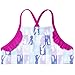 All over print design; Contrast raglan sleeves; Cute and stylish ruffles by shoulders; Awesome sublimation print design; UPF 50+ material for UVB and UVA protection and worry-free sun time; 4 way stretch fabric for comfort and long-lasting fit; Spaghetti straps; Fashionable ruched look; Fully lined; Elastic waist for better fit; Pull on closure