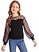 bishop sleeve contrast grid mesh shoulder button back blouse