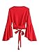 Flounce sleeve seep v neck belted surplice blouse,knot front,plain,slim fit