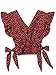 Surplice V neckline, tie knot at both side, stretchy pleated waistline, polka dot printed sleeveless crop tank top with ruffle trim.