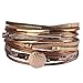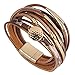 ❤️ GORGEOUS UNIQUE DESIGN ❤️ Our stylish & cute casual leather cuff bracelet features multiple strands of leather cords combination in different texture, adorned with fashionalble hammered metal and gold tone metal tube. Leather strands are crossing stacked and secured together into a one-piece wrap bracelet with a strong magnetic clasp. An overall handwoven and two times wrap around bracelet design ensures we conscientiously finish each piece