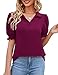 ❤【Skin-Friendly Material】Women's collared v neck shirts are made of super soft, comfy fabric, which are stretchy, breathable, lightweight and not-see through. This short sleeve polo shirts doesn't fade, shrunk after washing. Nice stylish and chic addition to your wardrobe.