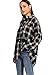 Features:Plaid, curved hem, long sleeve, collar, button end, longline, asymmetrical, casual blouse shirt for women.