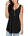 DESIGN:A-line, Curved hem, 3-button closures at chest, Crew neck, Sleeveless and long sleeve pleated front tank top, Solid color, Loose fit, Slight pleats at back;Seven colors for choosing,Armygreen/gray/black/blue/wine/purple/dark green.