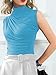 Trendy Design: The stylish layer tee shirts with a close, but comfortable fit with easy movement with a lovely mock neckline, sleeveless, turtleneck, wrap, ruched front, solid color. Slim fit style can show off your glamorous curved figure.