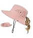 【 Windproof & Ponytail Design】: Kids sun hats come with breakaway clasp chin strap ensures the kids safety from choking and keeps the hat stay on kids head in windy conditions. Ponytail hole in back is considerate design for girls to allow girl's hair to stand up or down.