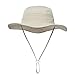 Features: UPF 50+ can block ultraviolet rays and keep children's delicate skin safe in the sun. The wide brim and mesh vents for cooling airflow through the crown. Adjustable drawcord and toggle at back help keep the hat stay on your little kids during windy days.