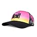 Cool multicolored pink flamingo trucker hat for women. Flamingo bird embroidered on the front with palm tree mesh print.