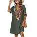 【 Mexican Embroidered Dress 】 --- This Mexican Style Tunic Dress for Women Is A Cute Embroidered Dress. There Are Lots of Traditional Floral Embroidery on the Middle of the Dress, the V Neck and the Short Sleeve. This Casual Stylish Dress for Daily Will Got You Lots of Compliments.