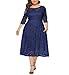 Women's Scooped Neckline Floral lace Top Plus Size Cocktail Party Midi Dress