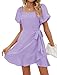 Features: Puff sleeve wrap dresses, square neck, womens mini short sleeve dress, above knee-length, Zipper at back, flowy ruffle hem, A line, tie waist, and the tie helps create a nice waistline.