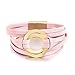 【UNIQUE GENEROUS DESIGN】 This Bohemia style handmade leather bracelet features multilayer mixed texture leather cord and combination with pearl and colorful rhinestones and metallic heart charm. It is one-piece stacked leather cuff bracelet finely finished with gold plated magnetic clasp that is easy to put on or take off