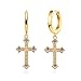 A pair of petite "Cross" dangle from these high-shine huggie earrings. These tiny Cross Dangle Huggie Earrings are perfect to wear everyday and add a chic touch to your daily outfits