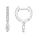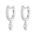 These gorgeous 14K white gold plated women's huggies with a sterling silver post and hinge closure are 13mm in diameter and measure 1.8mm wide. Dangling from the mini hoop earring is a 7x4mm tear drop set with AAAAA quality cubic zirconia.